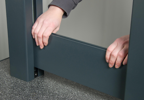 Spannnutenstein einsetzen, gegen Pfosten und Füllung verschrauben.